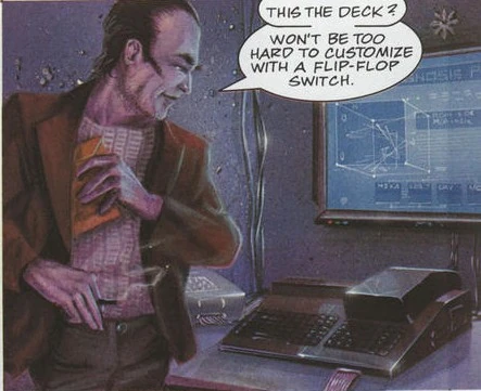 The Finn modifying Case's deck in the Neuromancer graphic novel. Art by Bruce Jensen